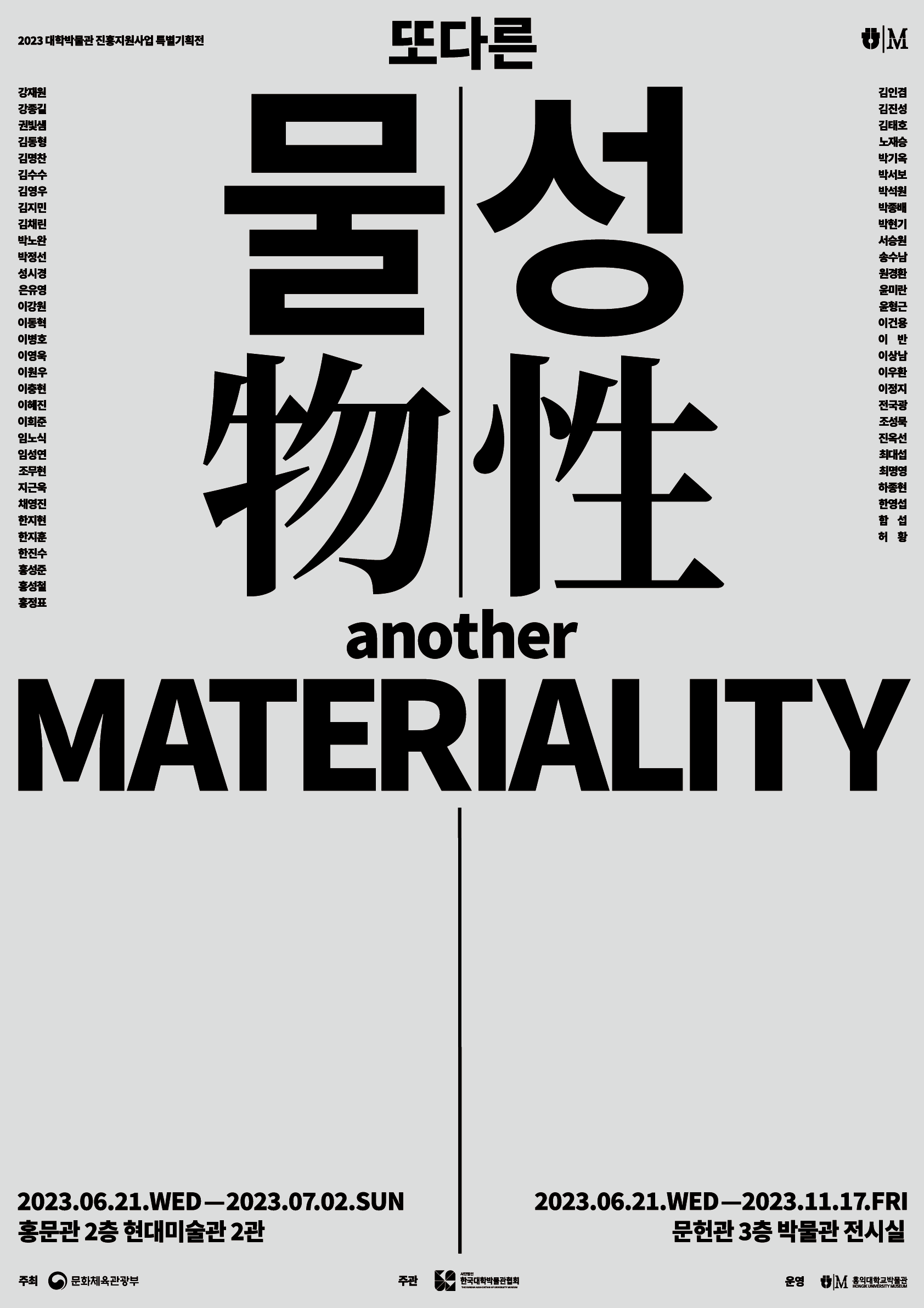또 다른 물성으로 2부현대 한국미술사에서 물성이 작품의 주제로 부상하기 시작한 1970~80년대 화단을 고찰하여 물성에 대한 미술사적 의미를 재고한다. 2023.06.21~11.17 | 오프라인 전체 |