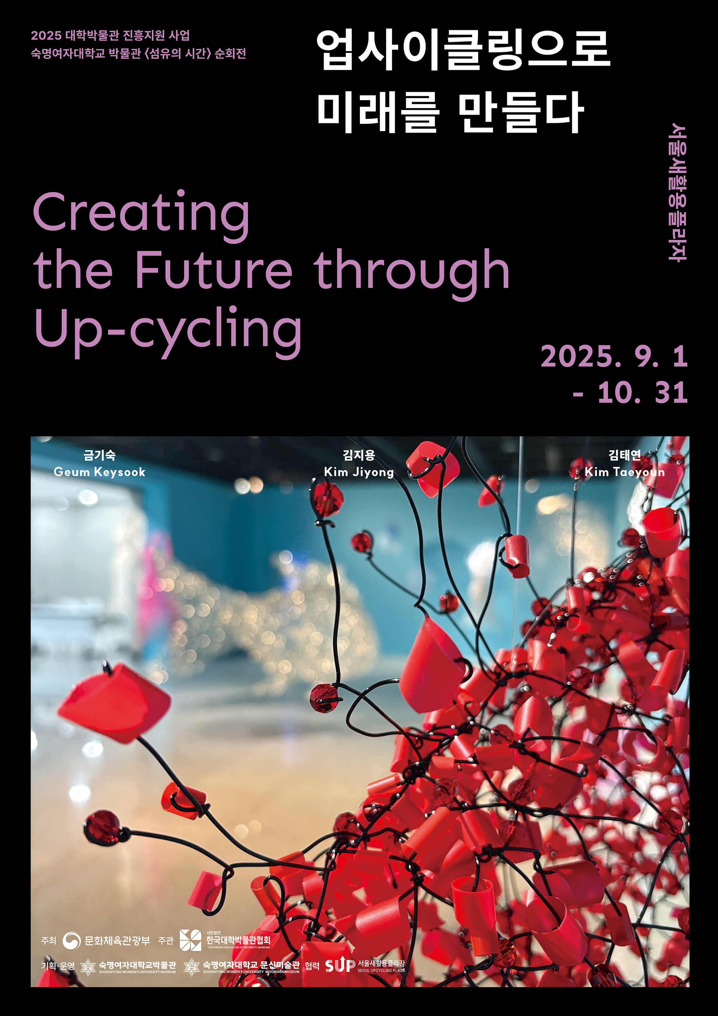 [순회전시1] 섬유의 시간-업사이클링으로 미래를 만들다.서울새활용플라자와 협력하여 폐자재를 사용한 업사이클링 공예 작품을 순회 전시 2025.09.01~10.31(약 40일) | 오프라인 청소년/성인/일반인 등 |